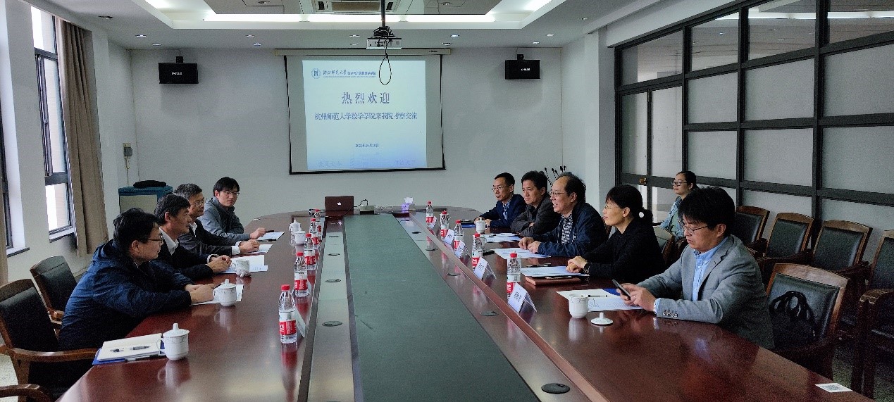10月28日下午,学院院长谢琪,党委书记徐金芳,副院长虞旦盛、何济位一行4人赴浙师大数学与计算机科学学院考察学习有关办院新理念、新思路。浙师大数计学院院长陈杰诚、党委书记吴向齐、副院长郑忠龙、数学系教授王维凡、初阳学院副院长杨敏波等出席。座谈会由浙师大数计学院党委书记吴向齐主持。