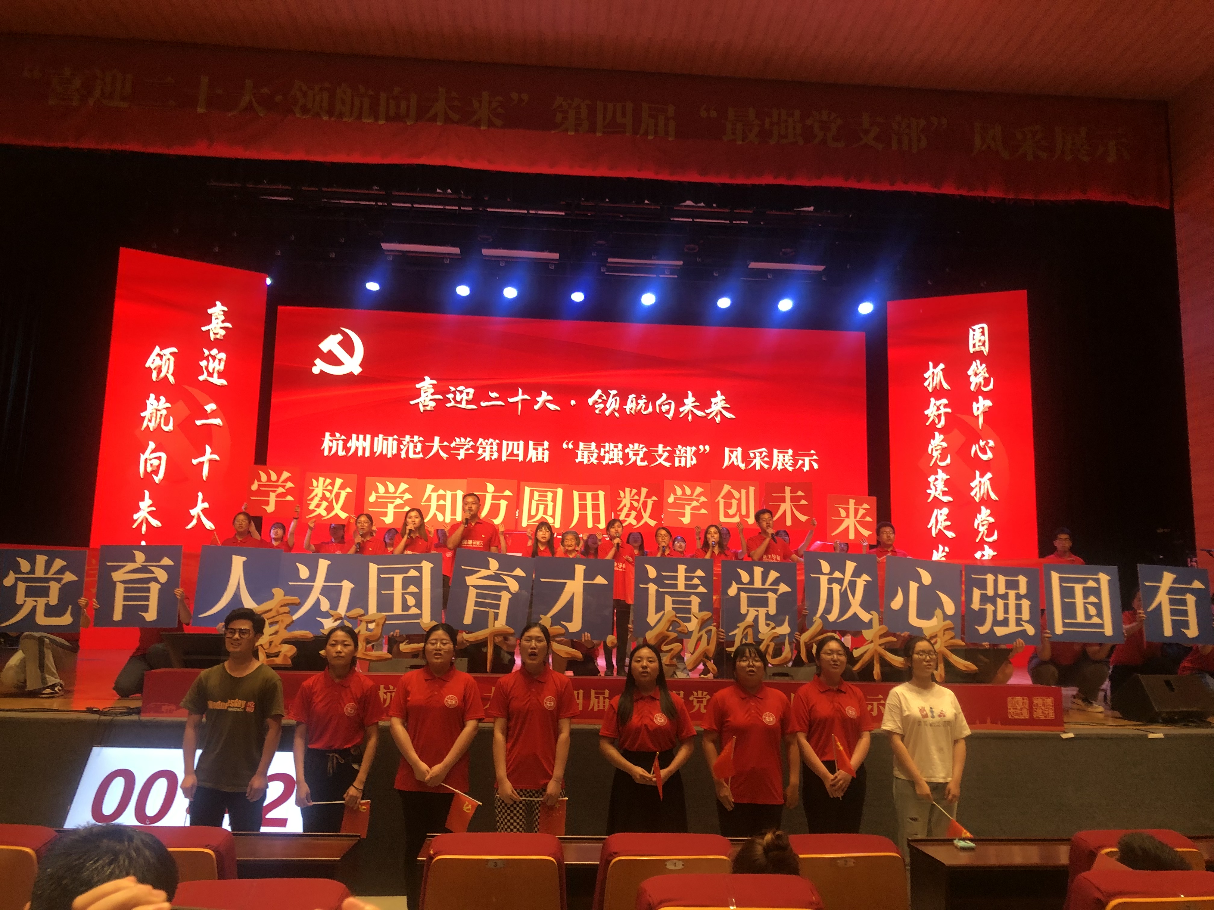 展示现场,由各个学院和职能部门的教工党支部与学生党支部组成的14支队伍,依次上台展示。深情的朗诵、精彩的合唱、风趣的情景剧轮番登场,为在场师生奉献了一场场精彩的风采展示。