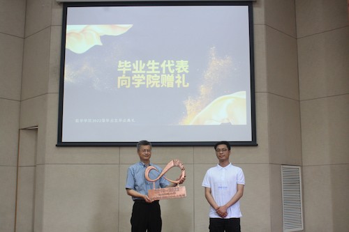 党委书记徐金芳代表学院接收毕业赠礼