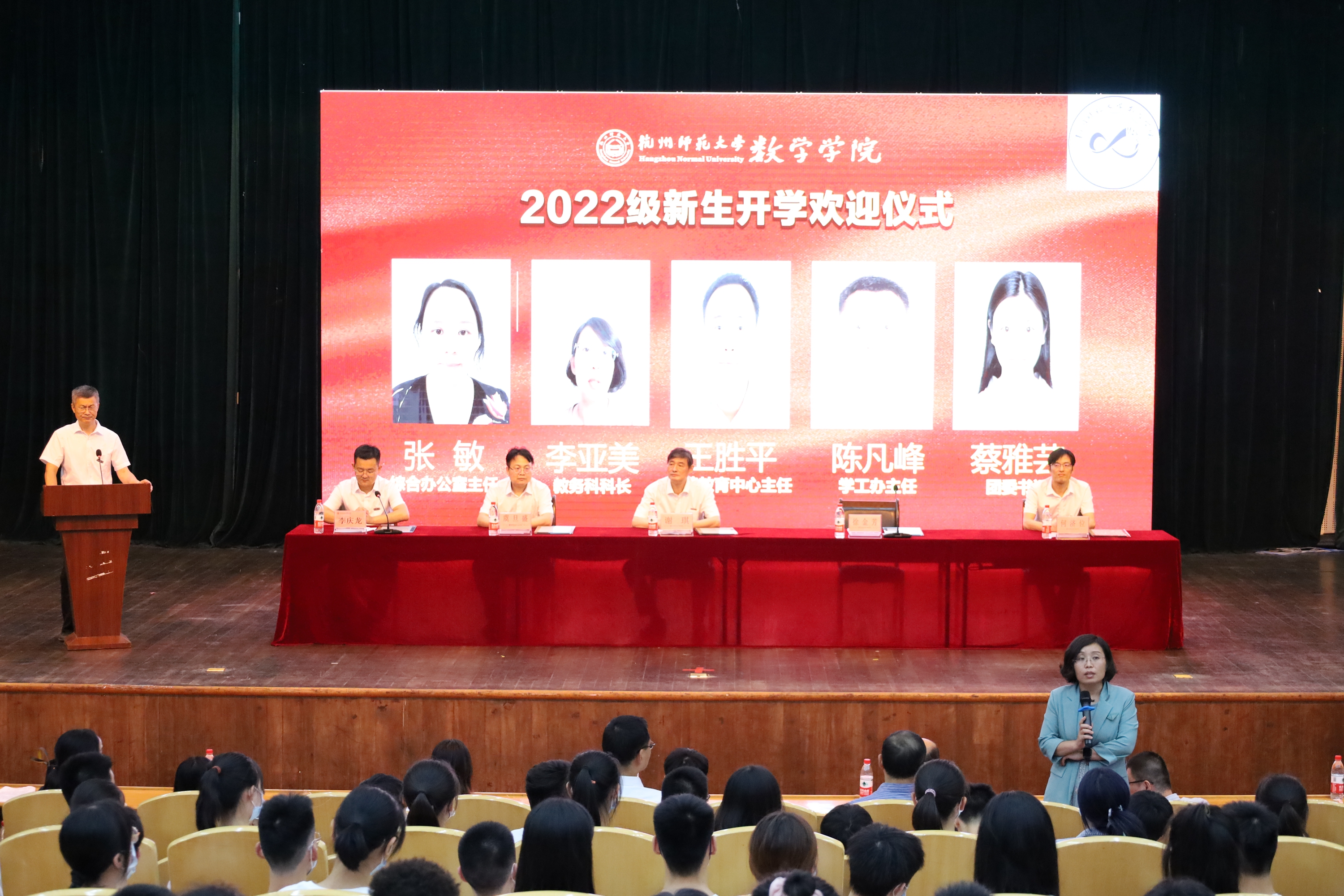 欢迎仪式在庄严的国歌声中拉开帷幕。院长谢琪教授热情洋溢地发表了致辞,首先向2022级新同学表示热烈的欢迎,向18年来呵护养育、培养教育新同学们的父母和老师表示衷心的感谢。他说,上有天堂,下有苏杭。在风景秀丽、历史悠久、文化厚重的杭州读书和生活,是一件十分幸福的事情。在线之家 前身是创建于1908年的浙江官立两级师范学堂算学科,数学是学校最早建设的六大学科之一。百十年来,一代又一代杭师大数学人弘文励教、青蓝相继,知数明德、弦歌不辍,涌现出著名数学家、教育家陈建功先生等各领域成绩斐然的杰出校友,培养了国家千人、长江学者、国家杰青等知名学者和一大批中学名师和名校长。院长谢琪教授讲授开学第一课,殷切寄语同学们锤炼优良的品德、担负起应有的社会责任,这是成为优秀人才的基石。坚定理想信念、不妄自菲薄,这是做出非凡业绩的必备条件。养成良好的学习习惯,敢于拼搏,这是不断进步的阶梯。