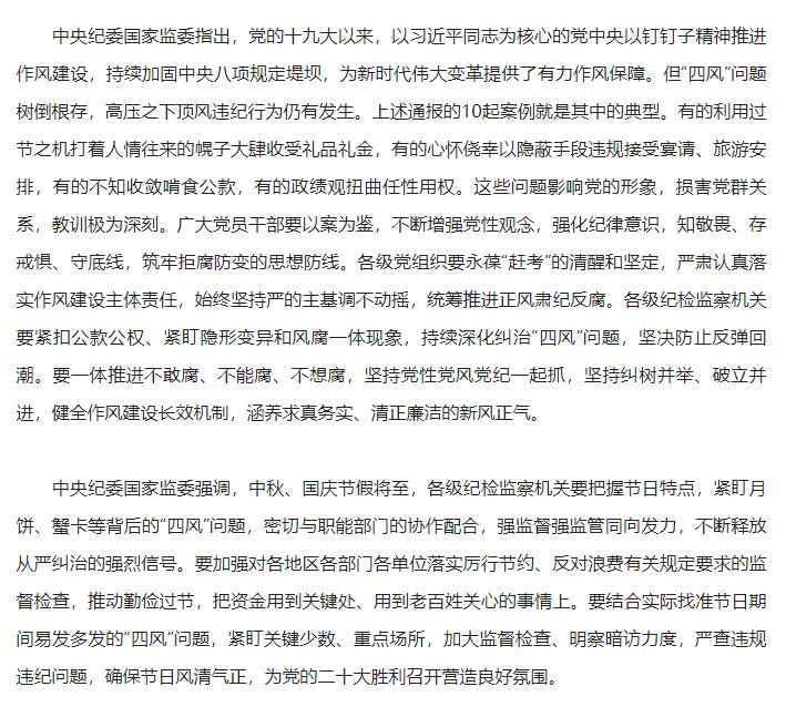 中秋、国庆将至,为持之以恒纠“四风”树新风,持续加固中央八项规定精神堤坝,推动风清气正过节,现就有关要求通知如下: