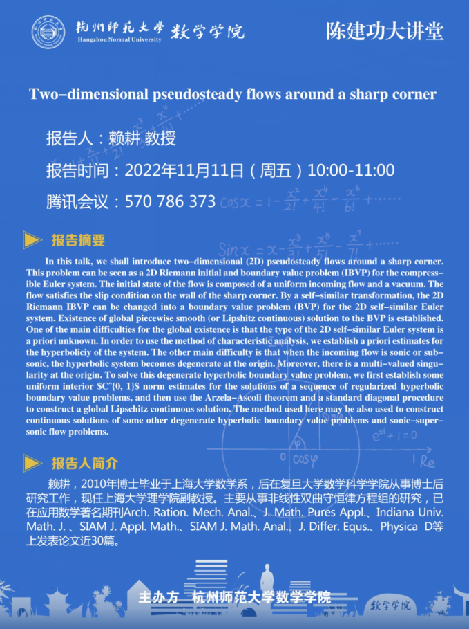 陈建功大讲堂: Two-dimensional pseudosteady flows around a sharp corner