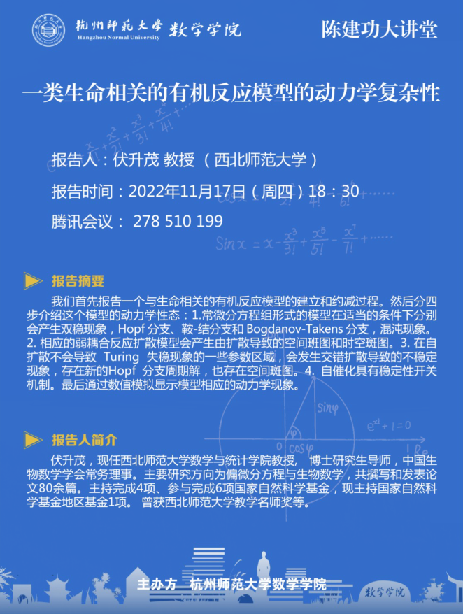陈建功大讲堂:一类生命相关的有机反应模型的动力学复杂性