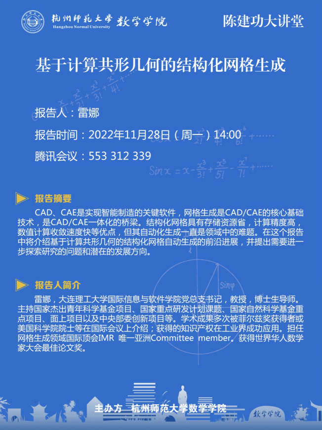 陈建功大讲堂:基于计算共形几何的结构化网格生成