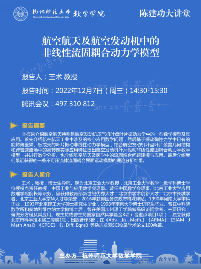 陈建功大讲堂:航空航天及航空发动机中的非线性流固耦合动力学模型
