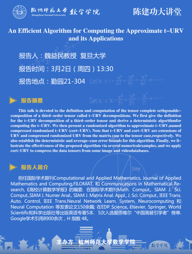 陈建功大讲堂:An Efficient Algorithm for Computing the Approximate t-URV and its Applications