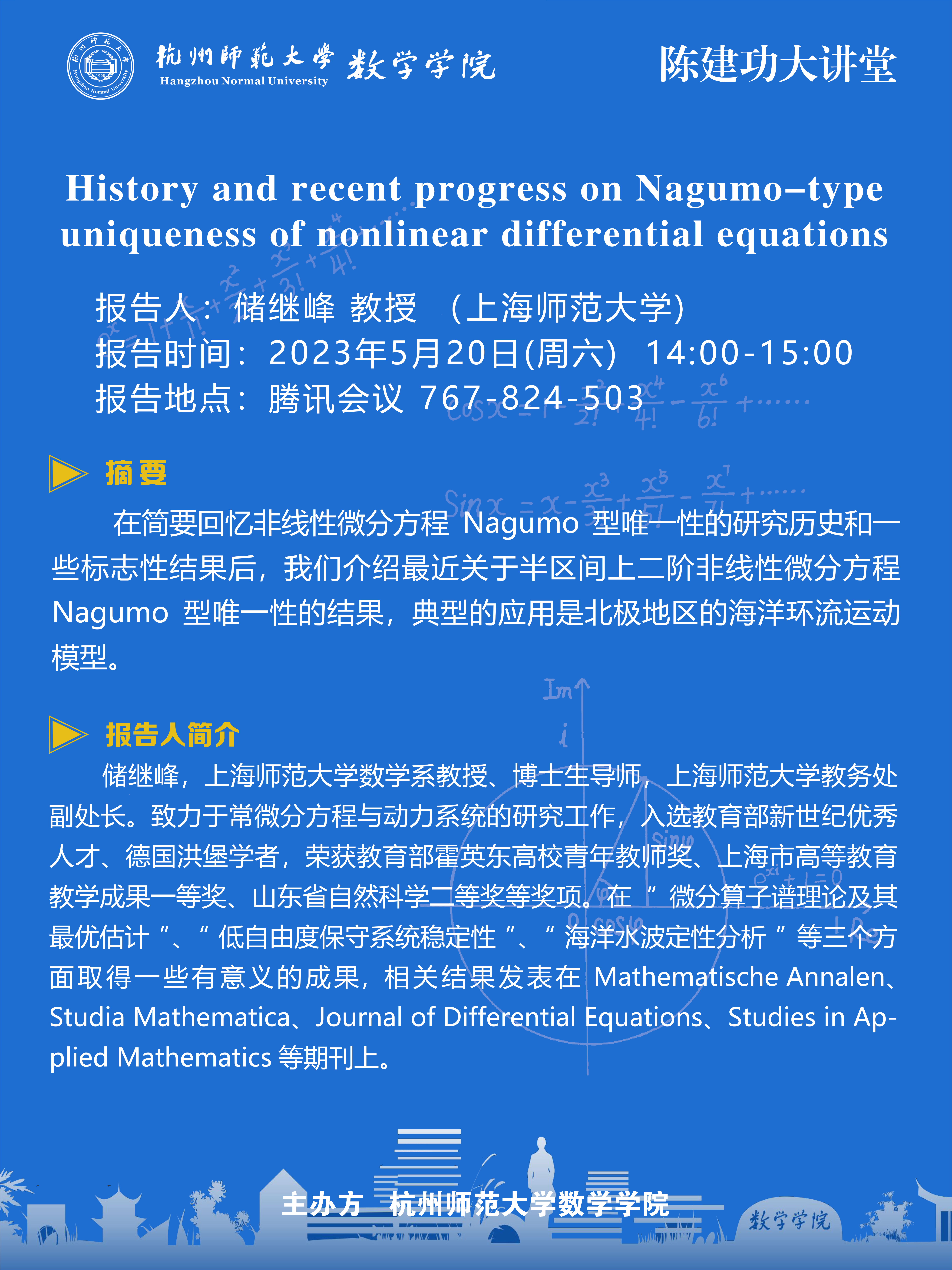 陈建功大讲堂:History and recent progress on Nagumo-type uniqueness of nonlinear differential equations