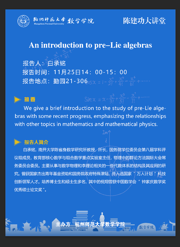 陈建功大讲堂:An introduction to pre-Lie algebras