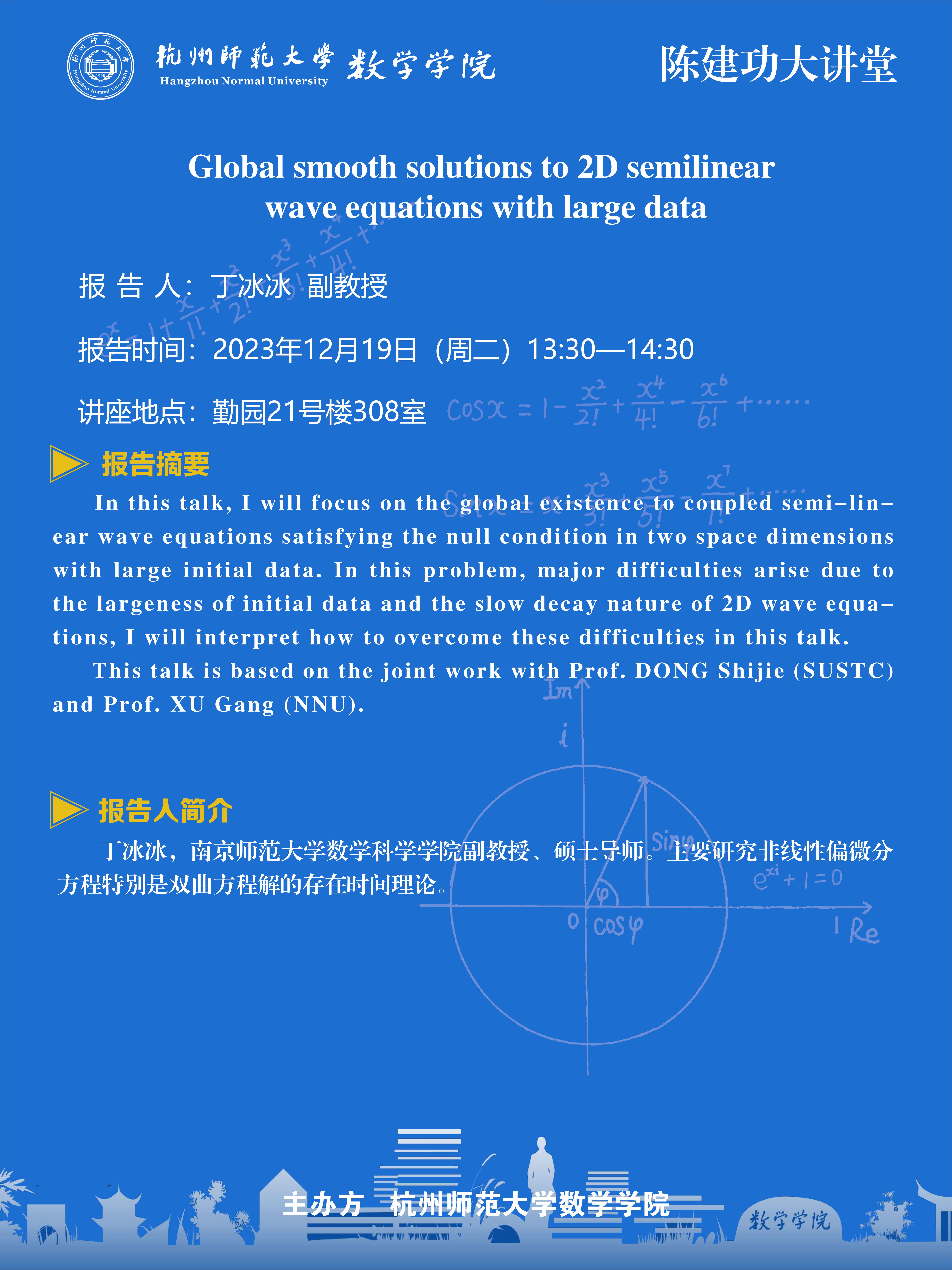 陈建功大讲堂:Global smooth solutions to 2D semilinear wave equations with large data