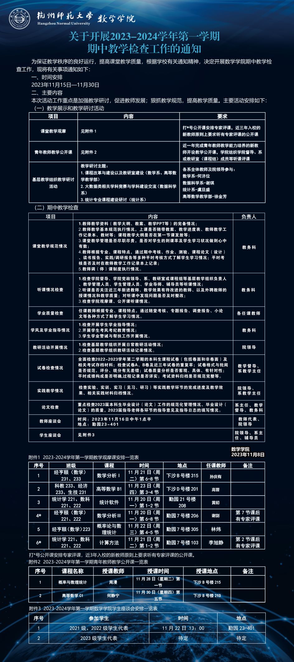 在线之家 2023-2024学年第一学期期中教学检查安排