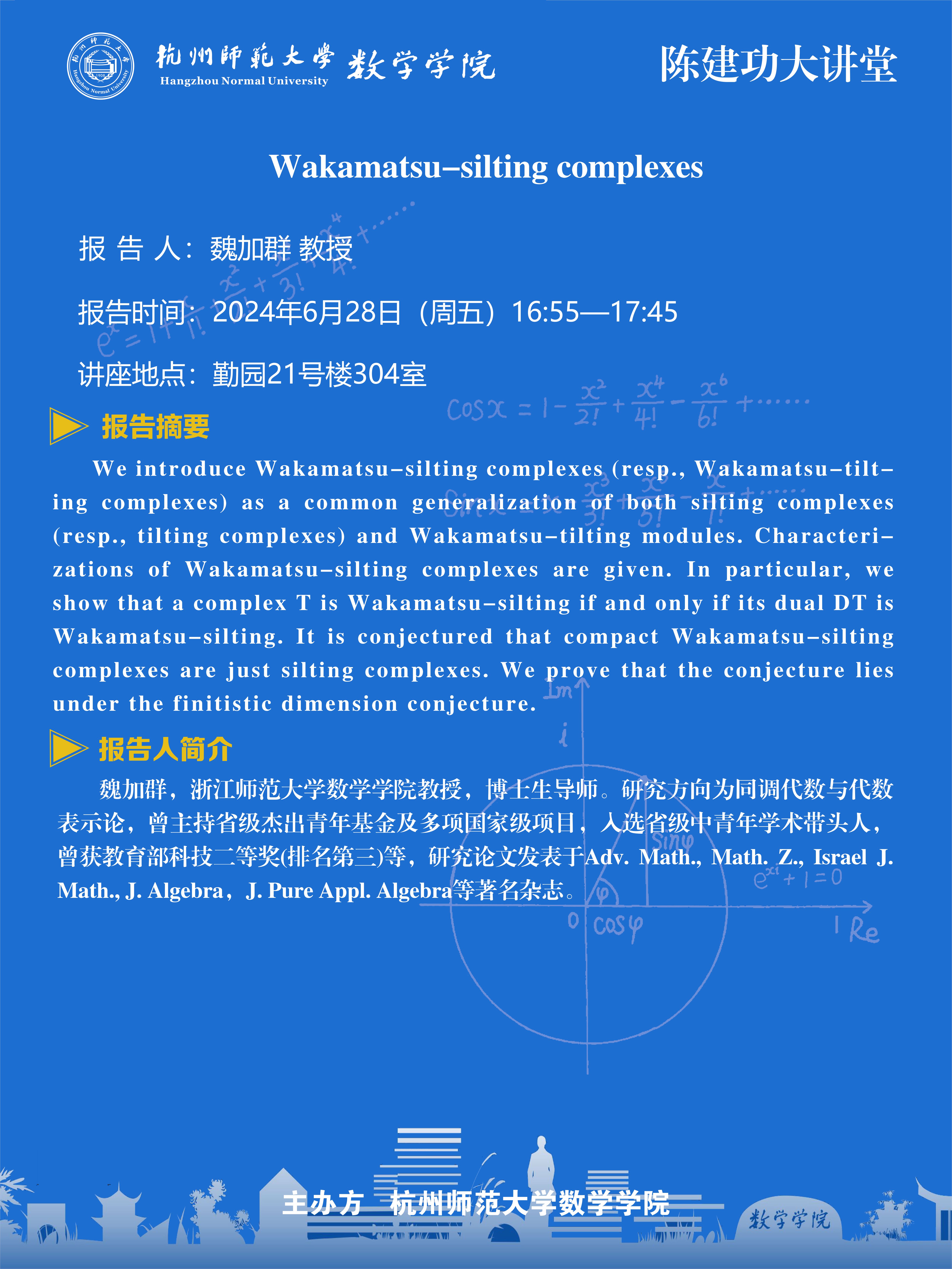 陈建功大讲堂(2024-101):Wakamatsu-silting complexes