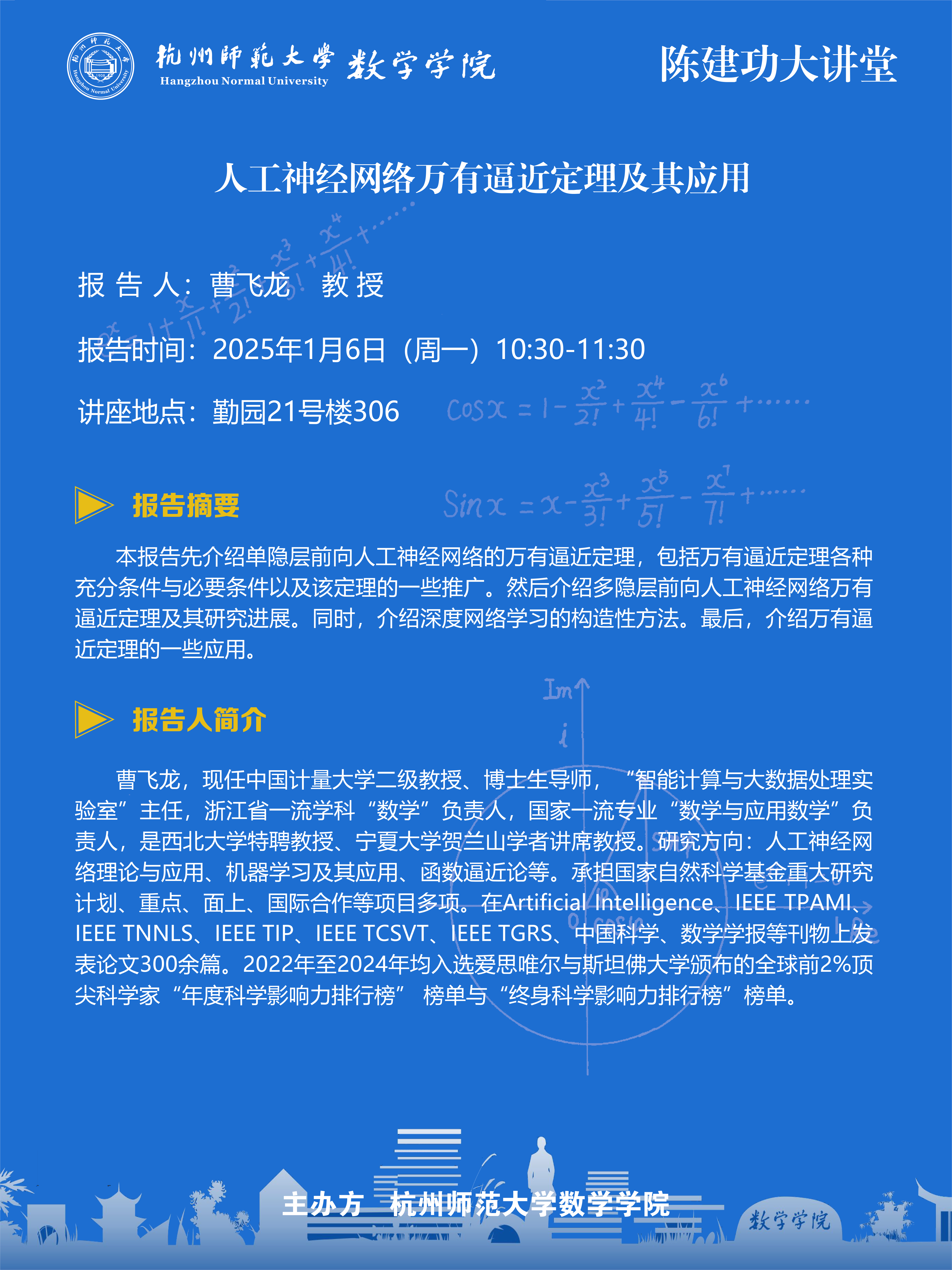 陈建功大讲堂(2025-1):人工神经网络万有逼近定理及其应用