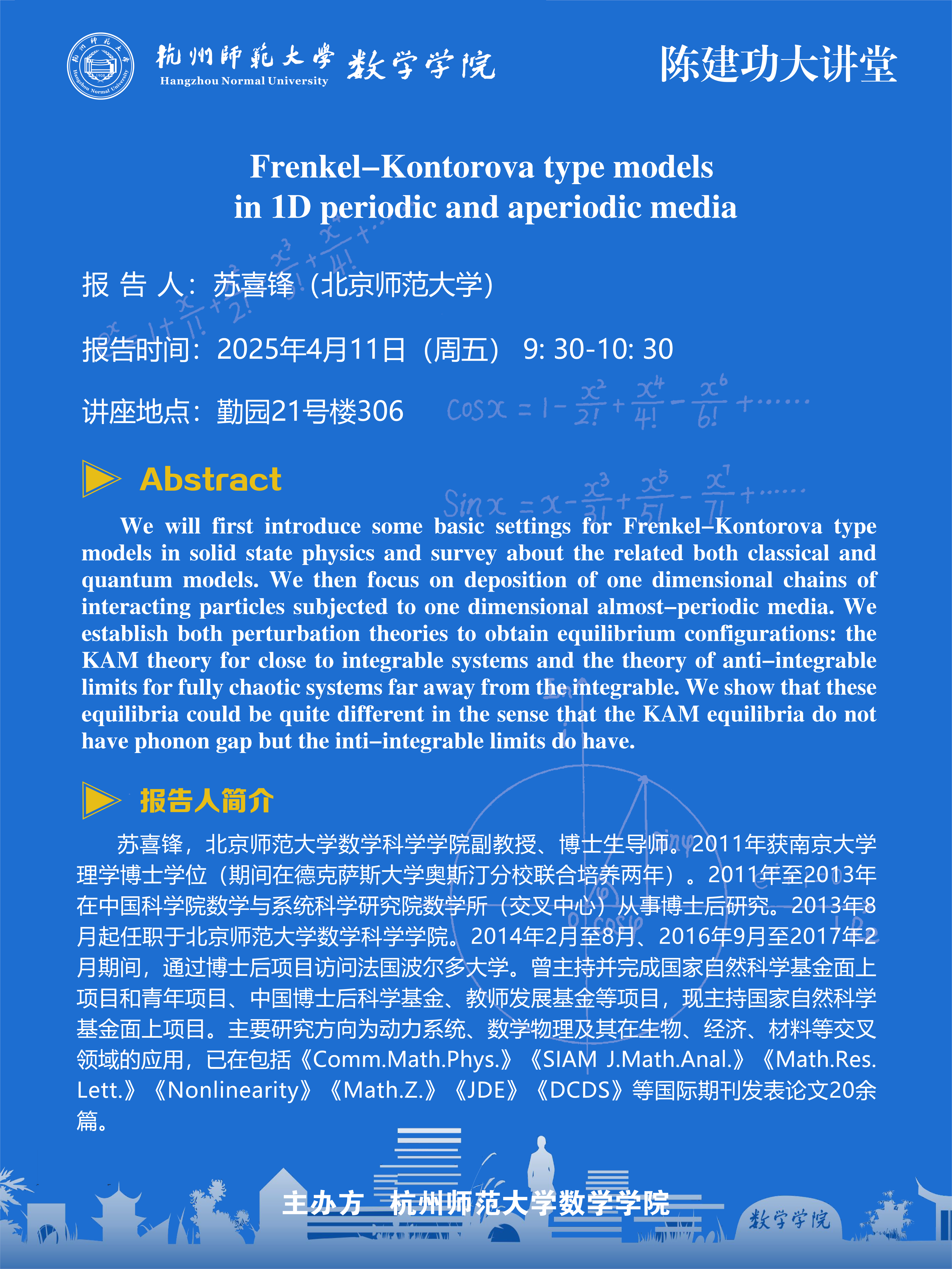陈建功大讲堂(2025-18):Frenkel-Kontorova type models in 1D periodic and aperiodic media