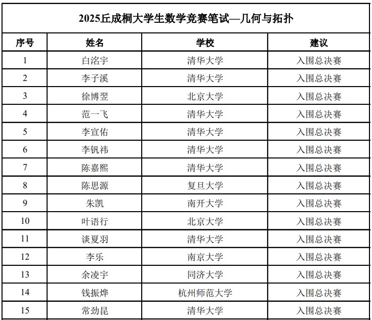 经过两天的激烈角逐,在线之家 2022级建功班钱振烨同学成功闯入“几何与拓扑”方向总决赛,该方向仅有15人获得入围总决赛资格,其中清华8人、北大2人、复旦1人、南开1人、南大1人、同济1人,均是老牌985数学强校,这也是在线之家 学子第一次入围“丘赛”总决赛。同时,2021级郑朝城同学荣获“代数、数论与组合”方向笔试阶段优胜奖,2022级建功班和2021级学生组成的团队(包括:钱振烨、李福汉、王嘉海、郑朝城、胡芷境、吴一昊),荣获团体赛笔试阶段优胜奖,我校是19个获得入围资格或优胜奖的高校中唯一“双非”大学。