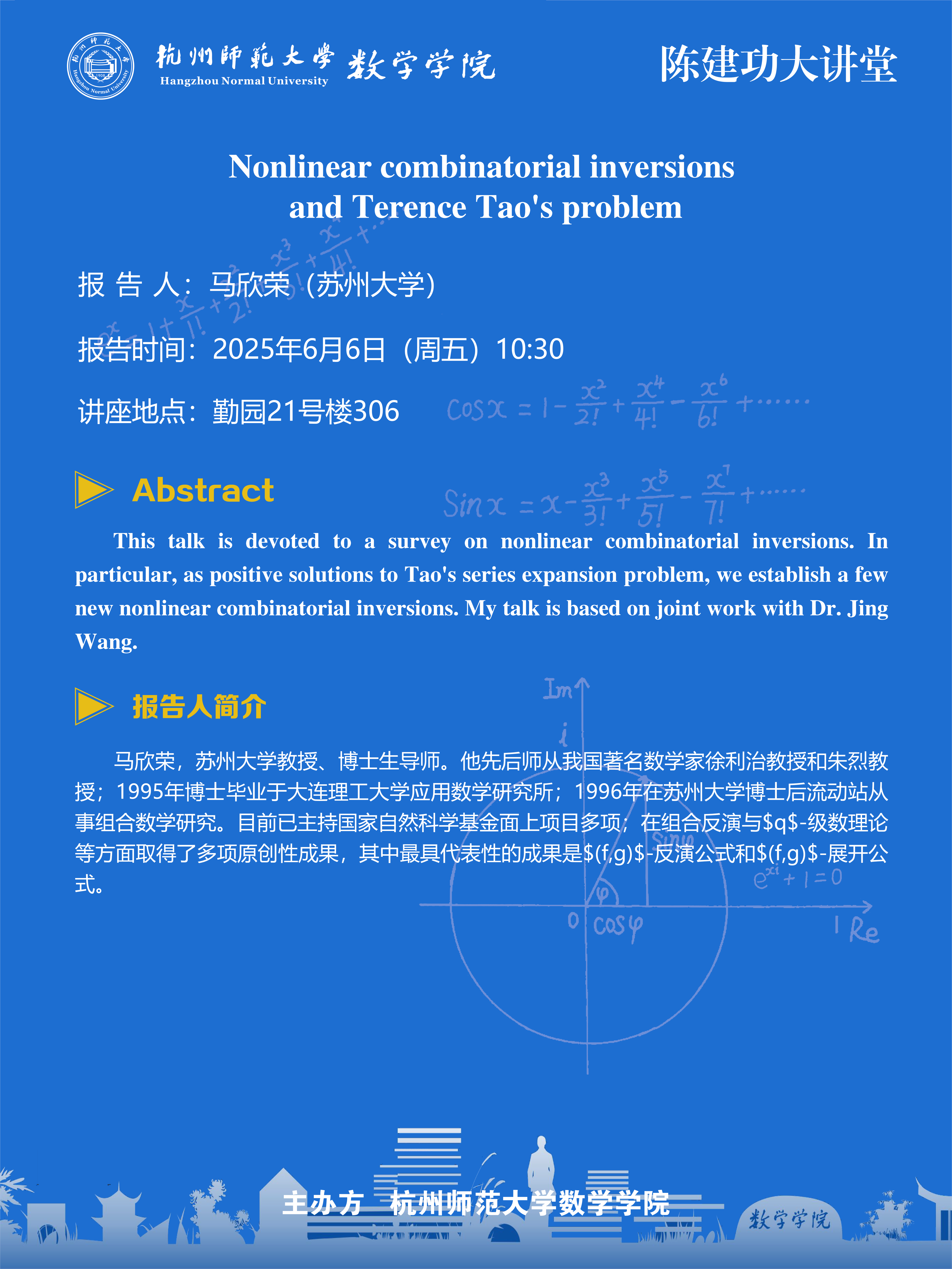 陈建功大讲堂(2025-49):Nonlinear combinatorial inversions and Terence Tao's problem