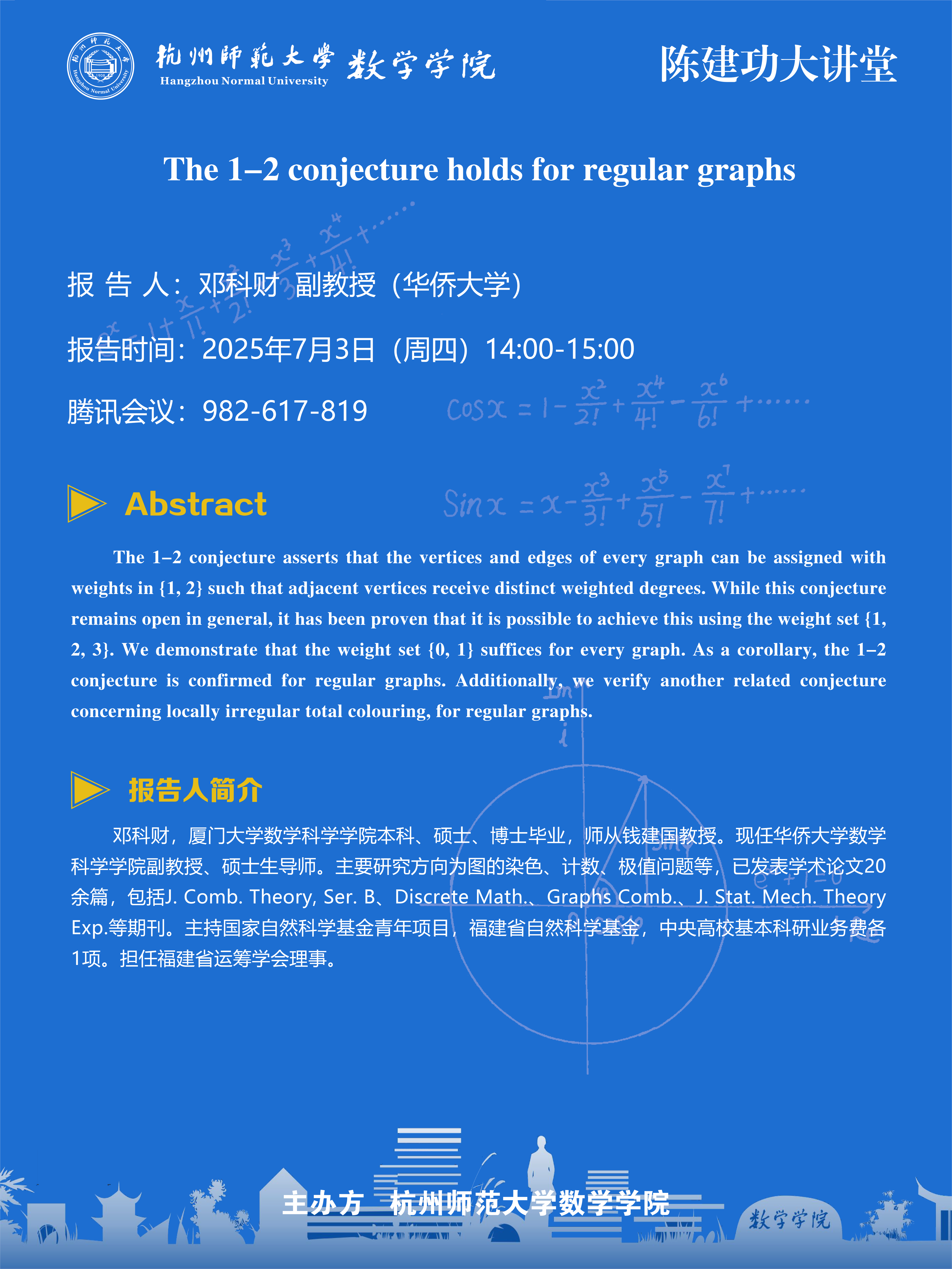 陈建功大讲堂(2025-56):The 1-2 conjecture holds for regular graphs