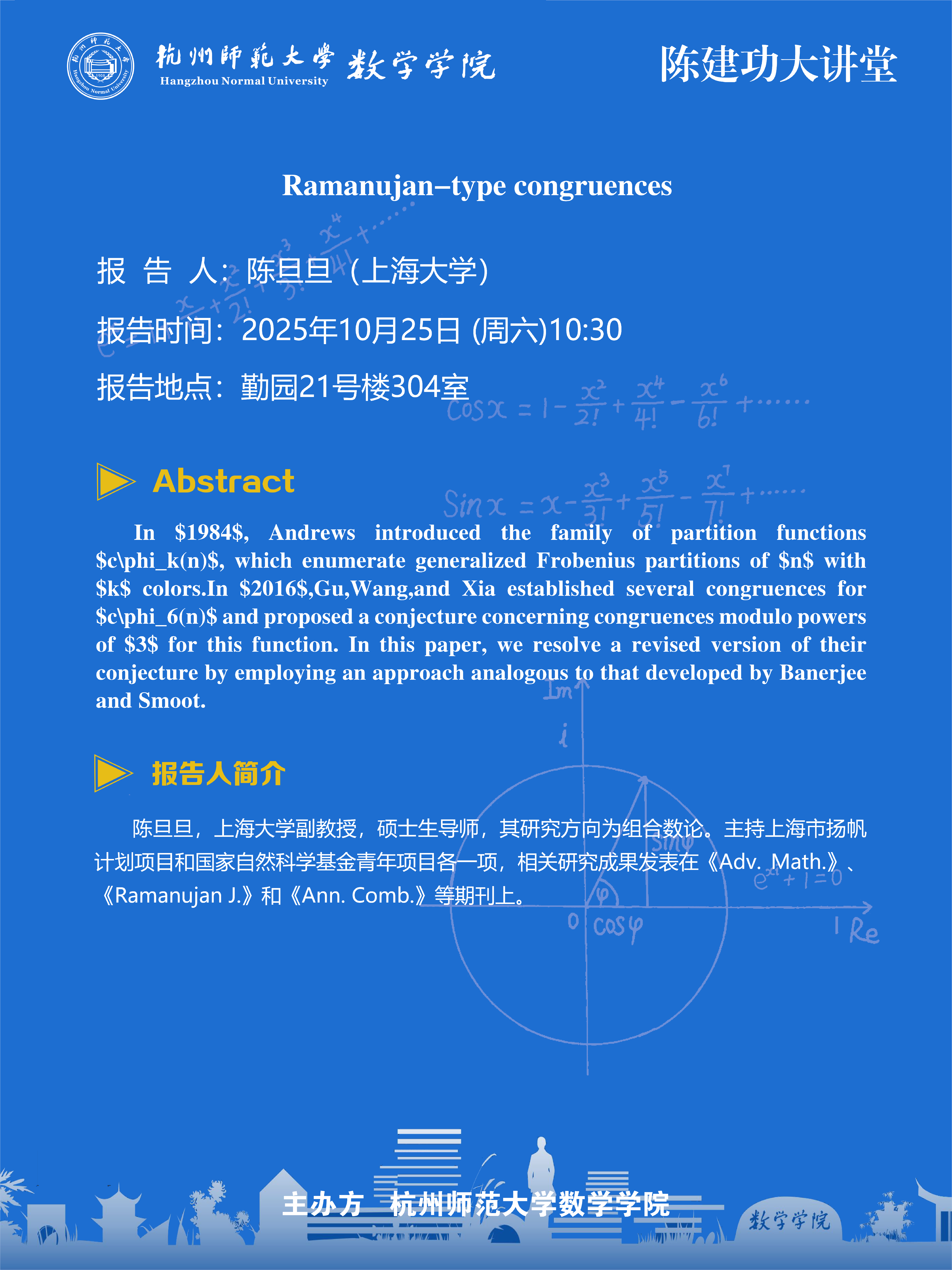 陈建功大讲堂(2025-102):Ramanujan-type congruences