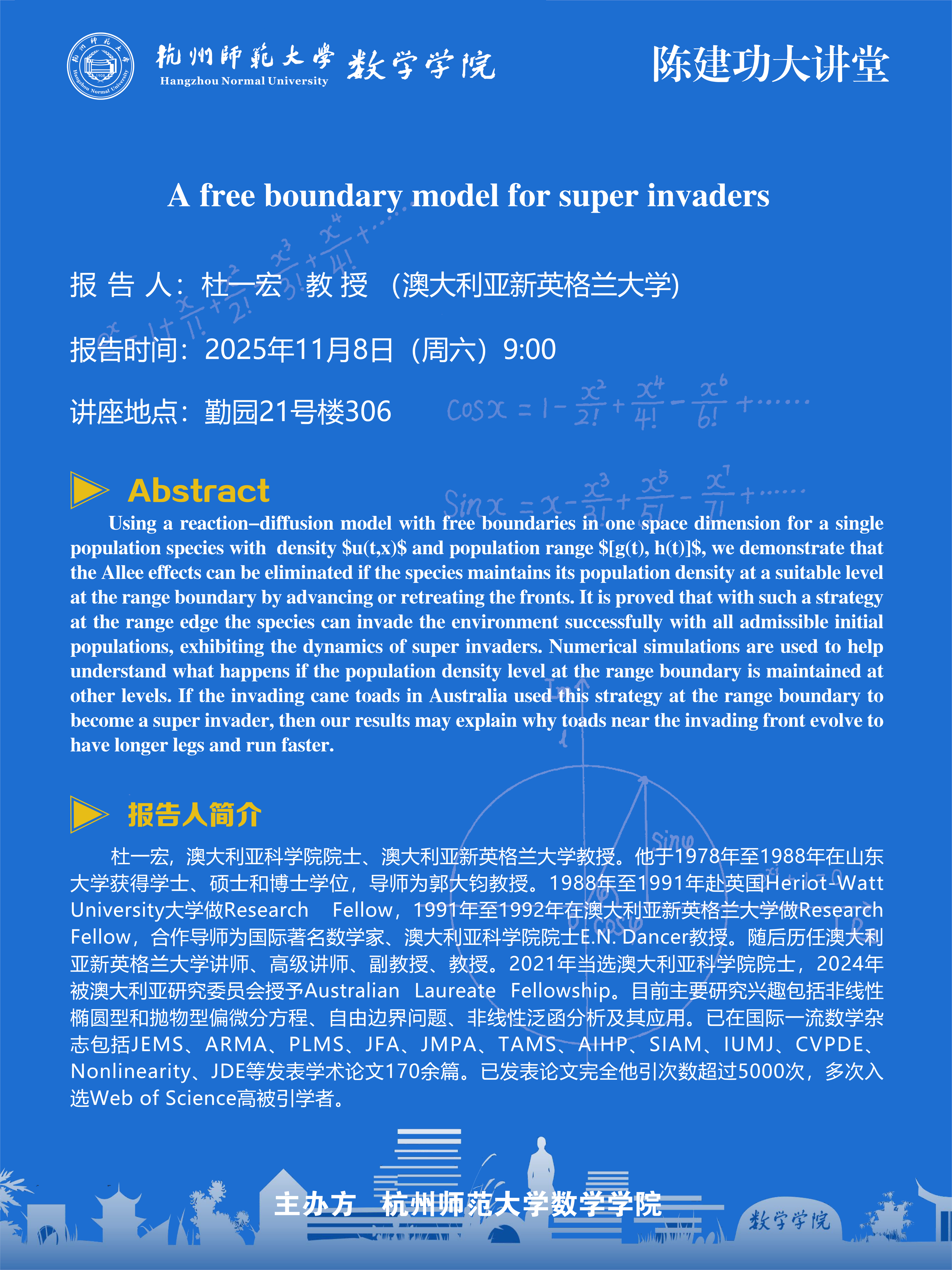 陈建功大讲堂(2025-113):A free boundary model for super invaders