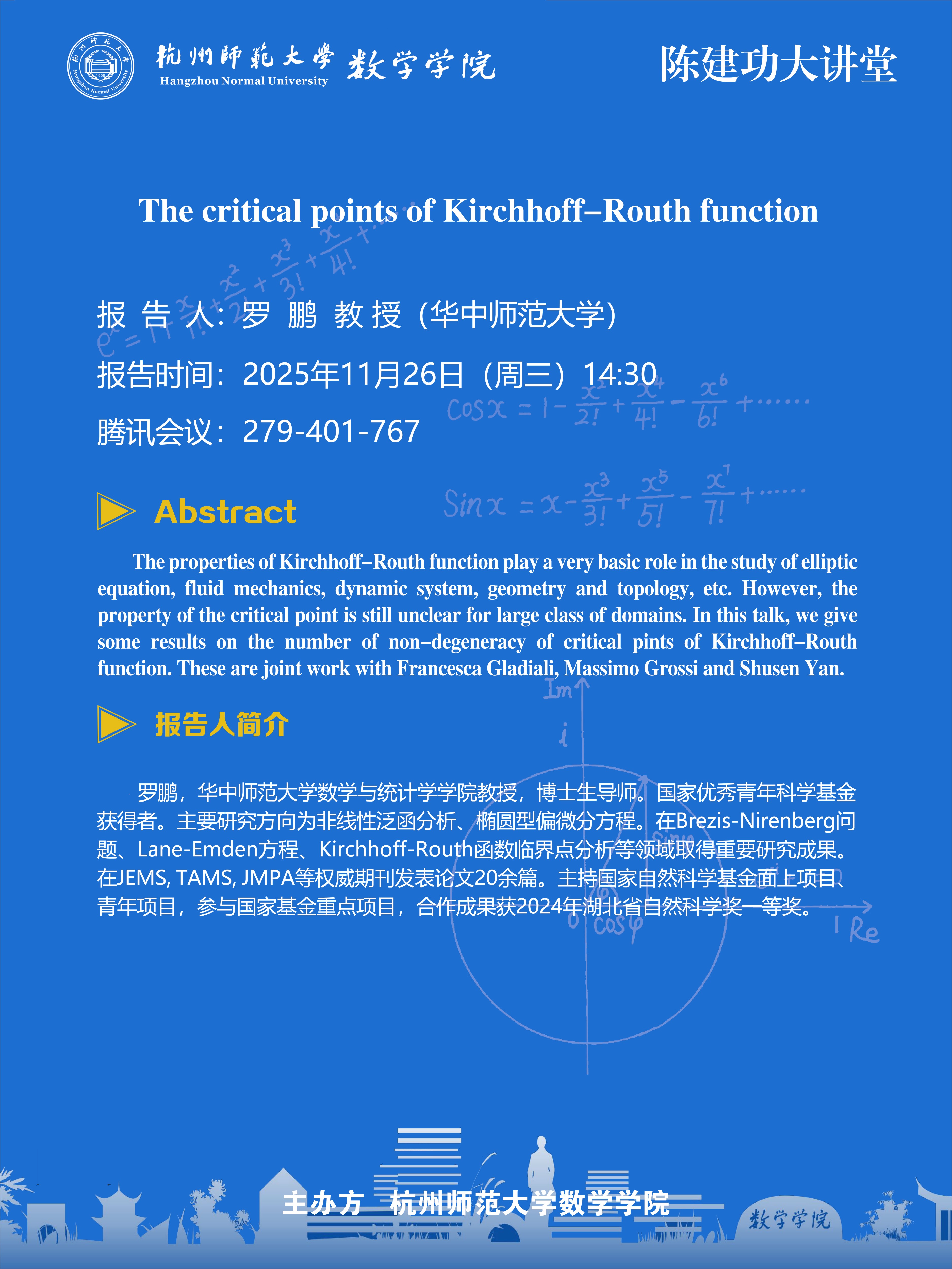 陈建功大讲堂(2025-144):The critical points of Kirchhoff-Routh function