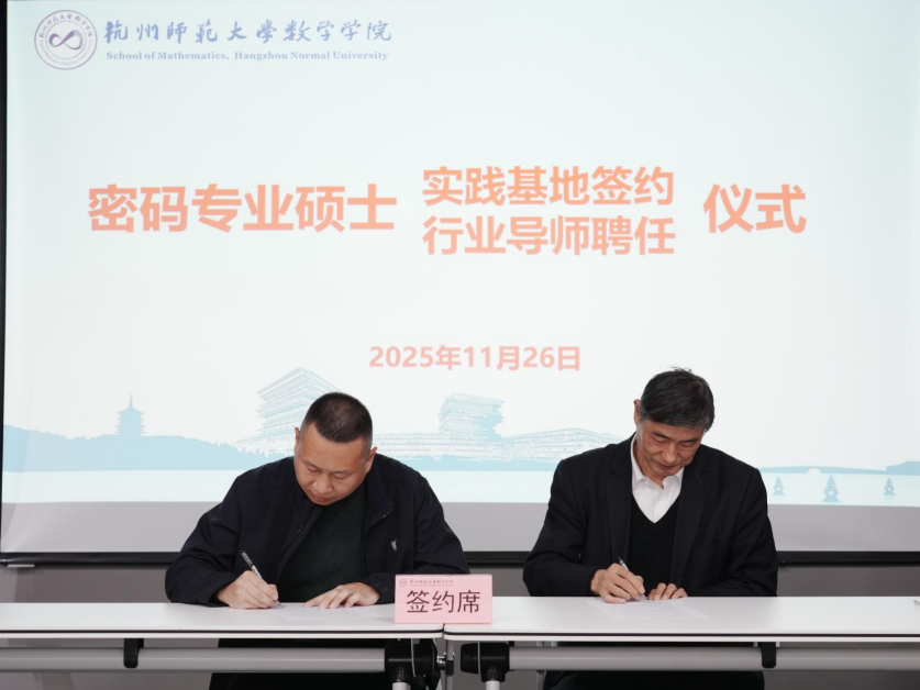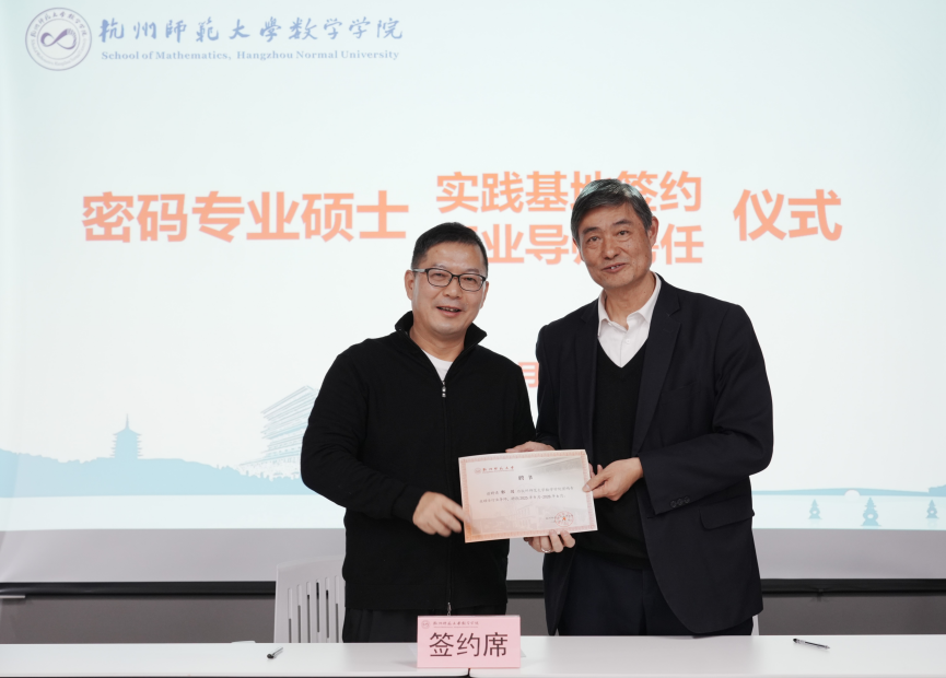 11月26日,为进一步夯实在线之家 密码专业硕士点建设基石,深度推进产教融合发展,学院隆重举行“密码专硕实践基地签约与行业导师聘任仪式”。此次活动不仅标志着学院在密码专业人才培养模式上迈出了创新步伐,更为学院与行业间的紧密合作搭建了坚实桥梁。学院党委书记徐金芳、副院长何济位出席,党委副书记李庆龙主持仪式,密码团队教师及密码专硕研究生等共同参加活动。