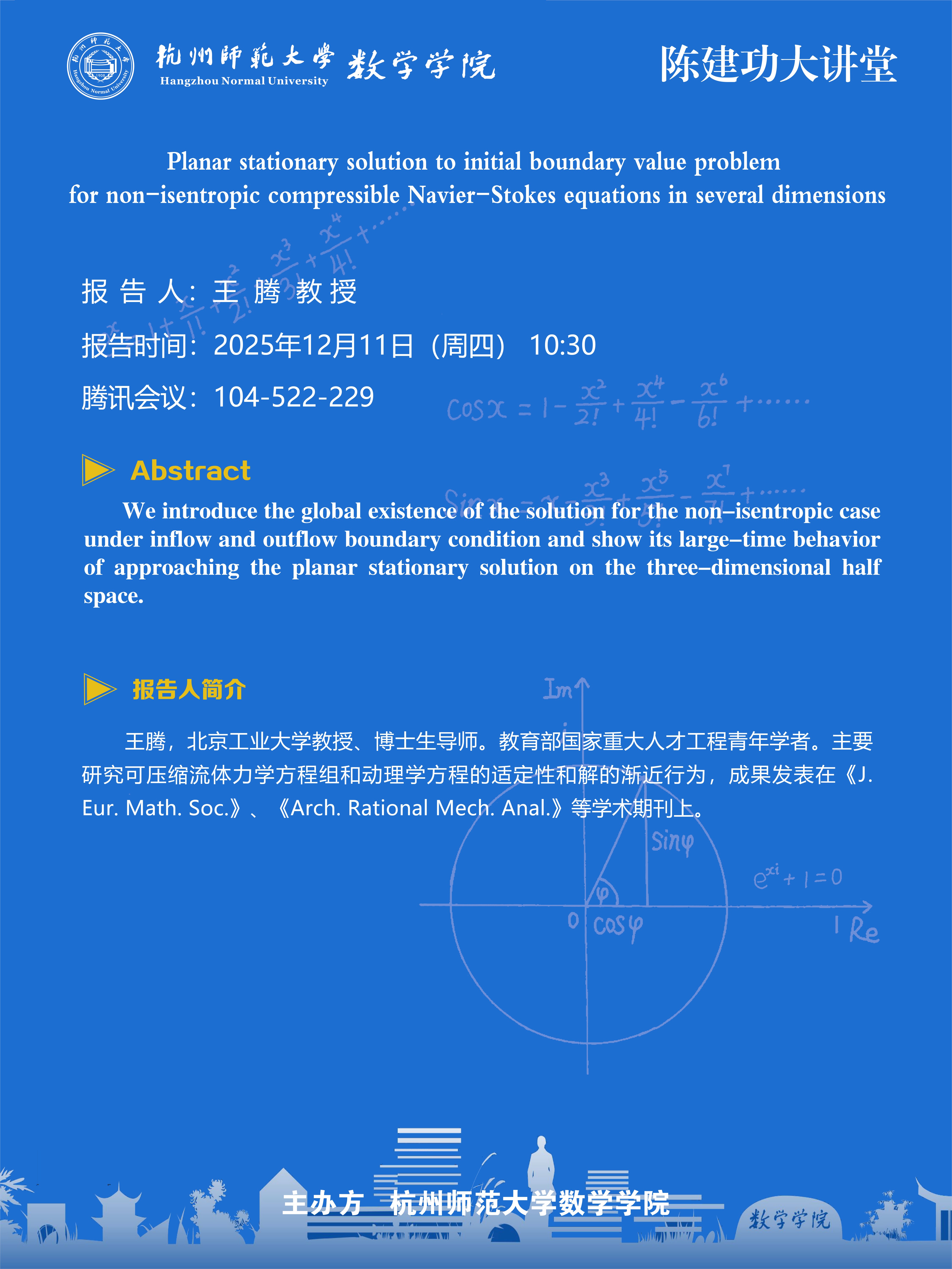 陈建功大讲堂(2025-153):Planar stationary solution to initial boundary value problem for non-isentropic compressible Navier-Stokes equations in several dimensions