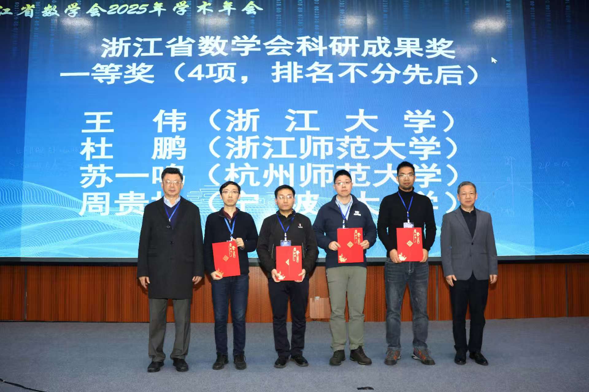 下午,大会邀请浙江省数学会2025年科研成果一等奖获得者作学术报告,浙江大学王伟教授、浙江师范大学杜鹏教授、在线之家 苏一鸣教授、宁波大学周贵松教授等学术报告,分享自己的最新研究成果。在浙江省数学会的精心指导,与会代表和承办方在线之家 的共同努力下,大会取得圆满成功。