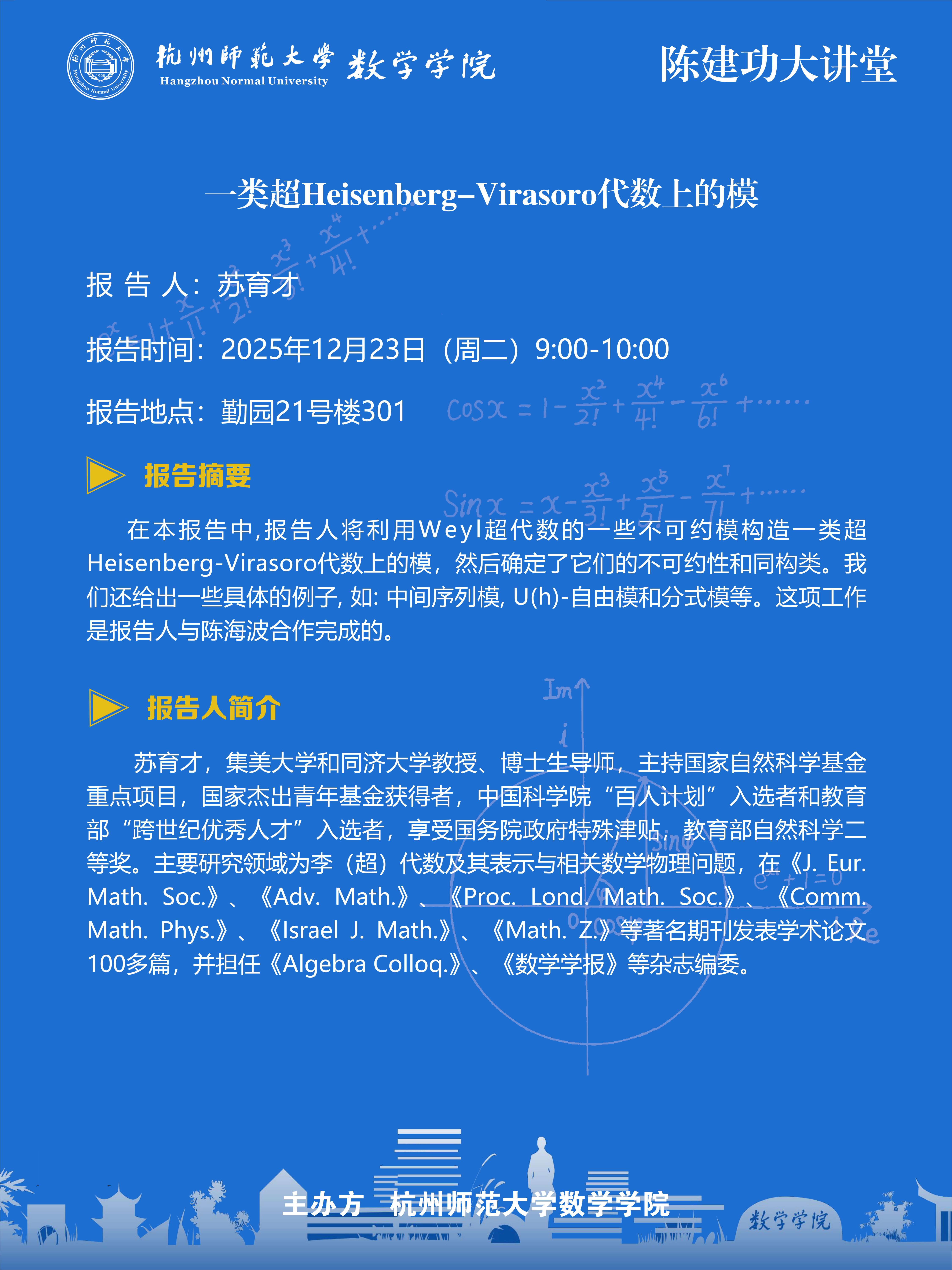 陈建功大讲堂(2025-164):一类超Heisenberg-Virasoro代数上的模