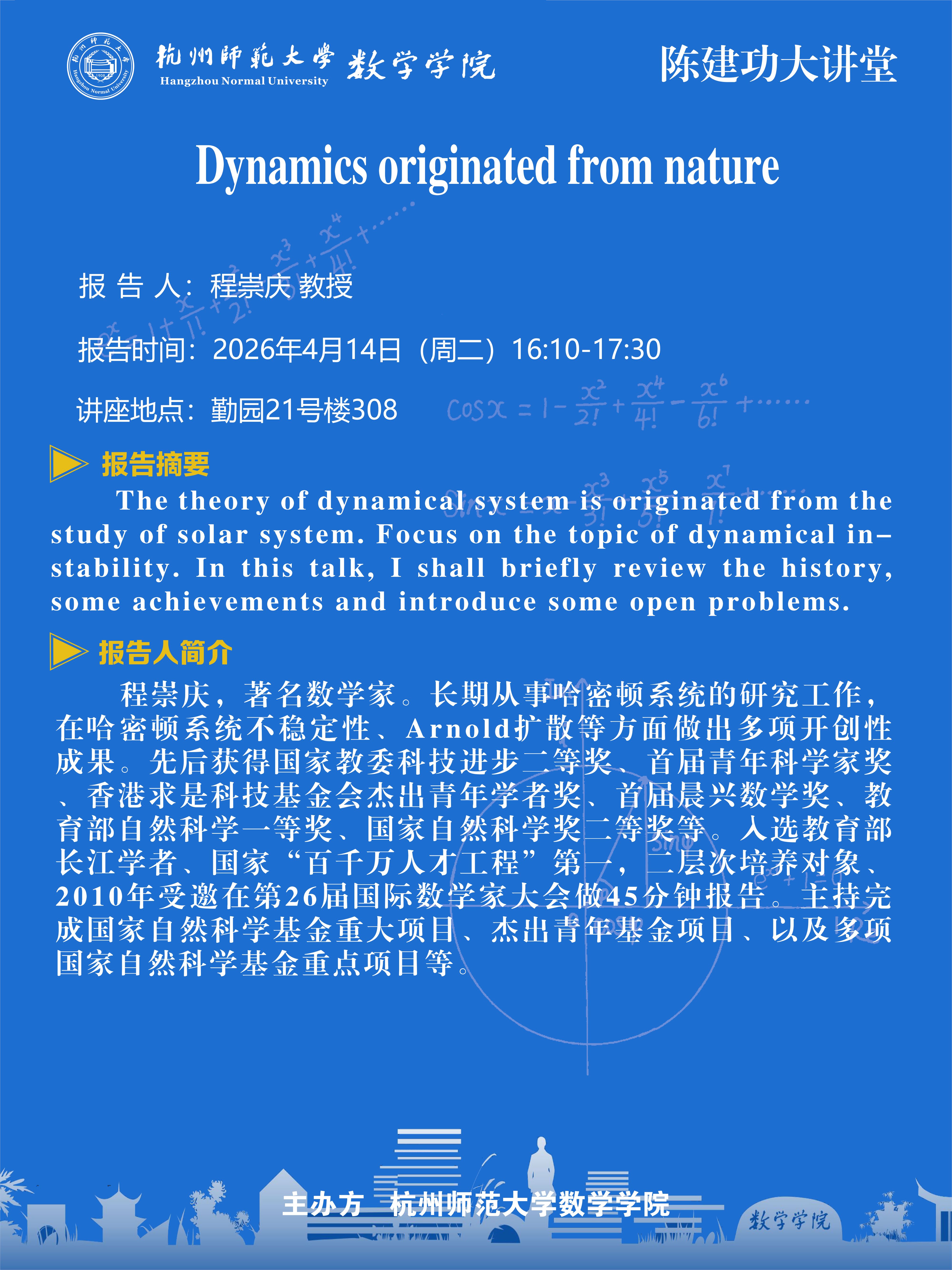 陈建功大讲堂(2026-11):Dynamics originated from nature