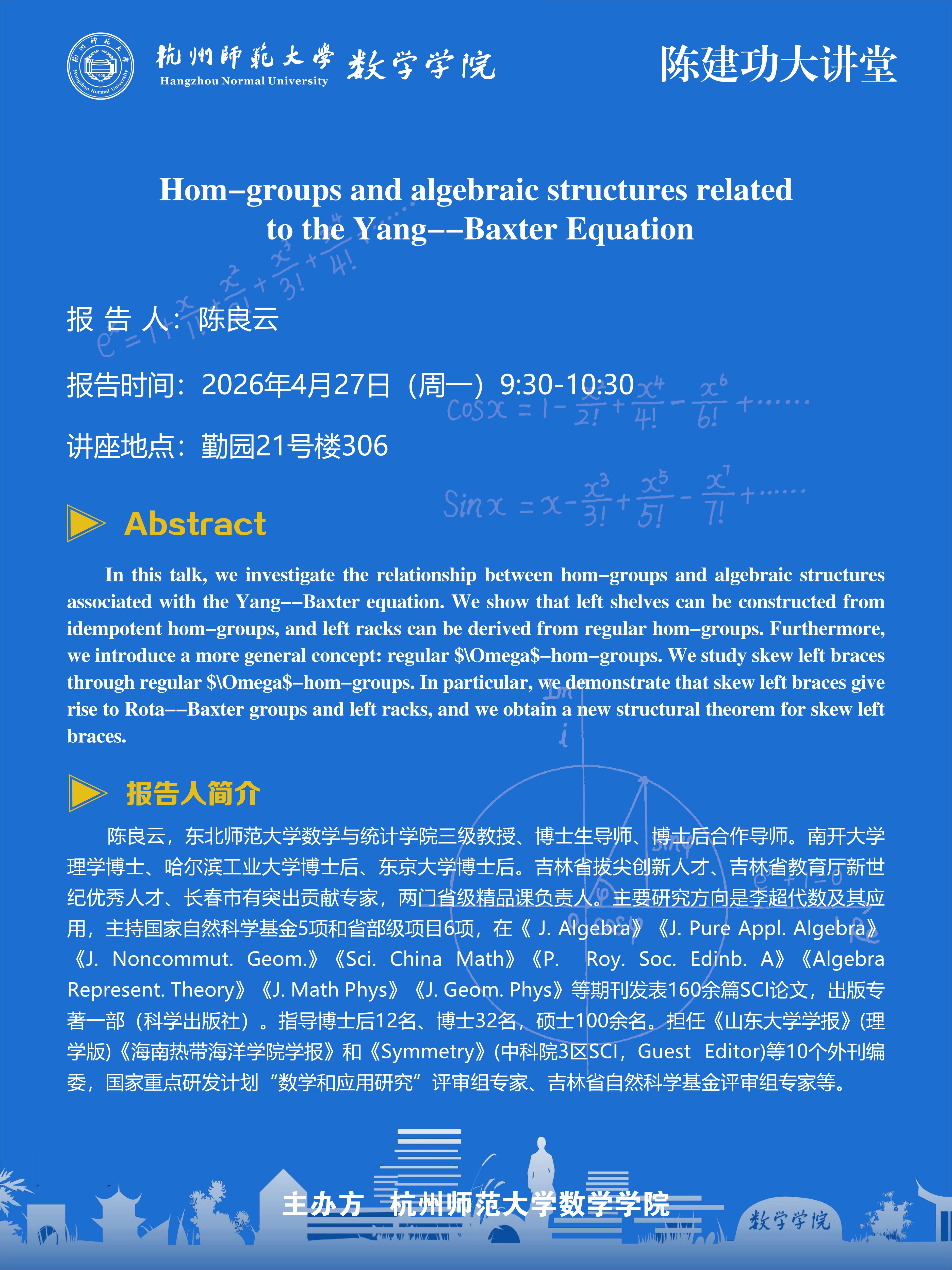 陈建功大讲堂(2026-19):Hom-groups and algebraic structures related to the Yang--Baxter Equation